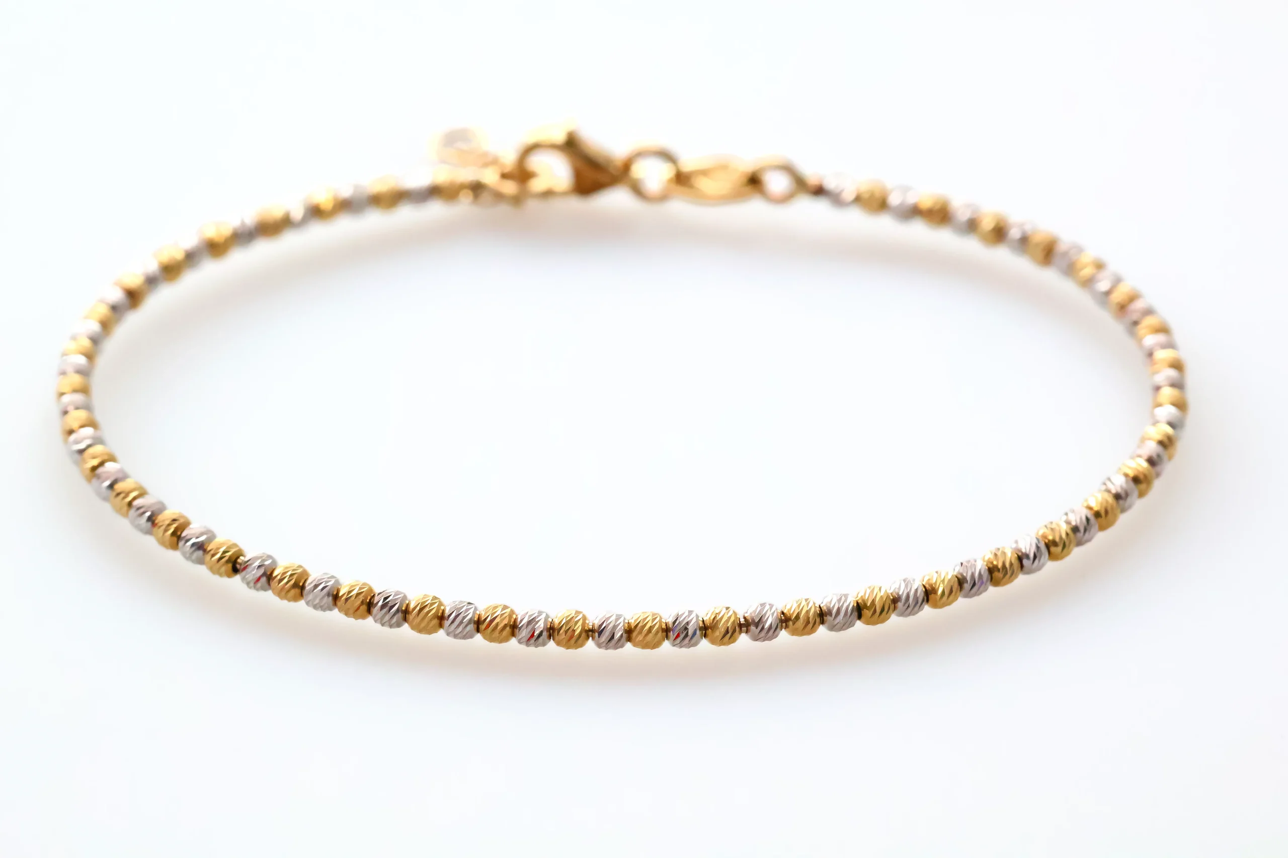 Elegantný náramok z jemne brúsených guľôčok v kombinacii žltého a bieleho zlata. Ideálny na každodenné nosenie aj ako decentný doplnok ku slávnostnému outfitu. Kvalitné spracovanie a nadčasový dizajn zaručujú dlhú životnosť a štýlový vzhľad.